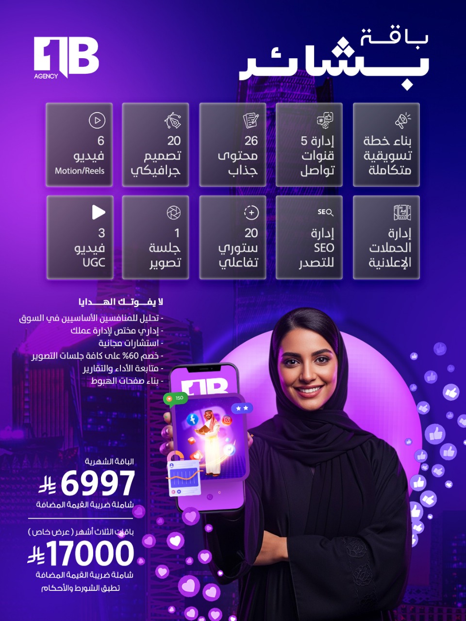 الهدايا ( جلسة تصوير إحترافية – إداري متخصص لإدارة عملك بالكامل – شهر + شهر مجاني – ميزانية حملة إعلانية مجانية – UGC أحترافي )